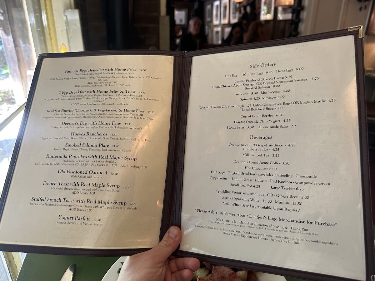 Whether you're here for a cozy meal by the fire or a hearty breakfast with friends, Deetjen's promises an unforgettable dining experience that invites you back for more.